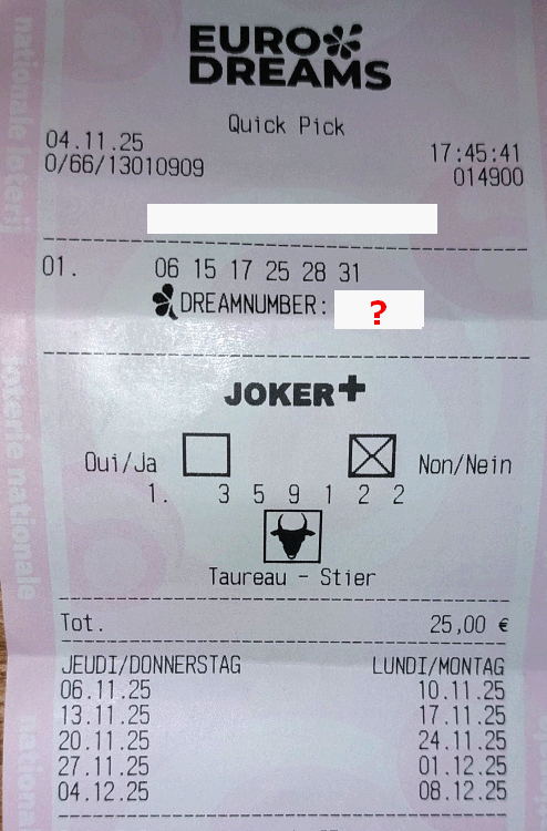 | meine E J P - Zahlen für Dienstag 04.11.2025 |