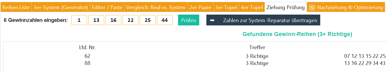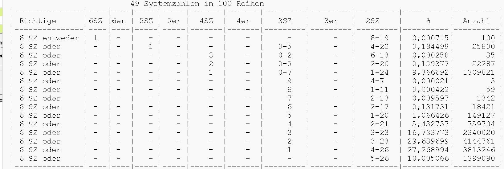 RE: 100 Lottoreihen-49 Lottozahlen-eine SuperZahl - Karate - 01.12.2025 Bin wieder dabei RE: 100 Lottoreihen-49 Lottozahlen-eine SuperZahl - Ecart - 01.12.2025 Achtung Korrektur - wir haben => + 36,30 € => + 30,25 % Rücklauf!!! => 3 mal 10er ![]() (01.12.2025, 12:42)Didi schrieb: Hallo Jürgen @Mitleser & Didi! DAS werde ich nicht machen! ![]() Das werde ich jetzt grundsätzlich so für bis 5 € (Rücklauf) für ex TG-Teilnehmer durchführen. Habe in meiner Lottosoftware was reinprogrammiert: Sollte DIESE TG z. B. den solo-Gewinn von 6er + SZ treffen, dann waren/sind die 3,63 € von @Didi => + 574.000 € Wert. Wie geht das, ganz einfach, ich ziehe von meinem TG-Anteil 3,63 € ab => 68,37 mein TG-Anteil. Stand für Mi. 03.12.2025: 8,37 € TG-Beitrag, da € 12 minus 3,63 € Rücklauf! | 36,30 € - 18,15 € : 5 => + 3,63 € 1. Gagga ? 2. Karate; dabei; 8,37 € 3. Brokerjays ? 4. Oli ? 5. Didi; 3,63 €; bez. 5. Ecart/68,37 € RE: 100 Lottoreihen-49 Lottozahlen-eine SuperZahl - Didi - 01.12.2025 Daaanke DiDi RE: 100 Lottoreihen-49 Lottozahlen-eine SuperZahl - Liolinalilly - 01.12.2025 Hallo würde auch gerne mitspielen 100 Lottoreihen-49 Lottozahlen-eine SuperZahl - Ecart - 01.12.2025 (01.12.2025, 16:09)Liolinalilly schrieb: Hallo würde auch gerne mitspielen Einverstanden! 12 € => dein TG-Spielbeitrag DIESE TG ist somit für Mi. 03.12.2025 ausverkauft! 1. Gagga; 9,58 € (13,21 €) 2. Karate; dabei; 9,58 € (13,21 €) 3. Brokerjays; 8,37 € (12 €) 4. Oli; 8,37 € (12 €) 5. Didi; 3,63 €; Rücklauf! 6. Liolinalilly: 12 € 7. Ecart; 53,95 € Das neue 100 Reihensystem ist noch ein tick optimaler, von 15,94 % auf jetzt 10,00 % - siehe Gewinntabelle: RE: 100 Lottoreihen-49 Lottozahlen-eine SuperZahl - Liolinalilly - 01.12.2025 Bankverbindung oder pp bitte per pn |