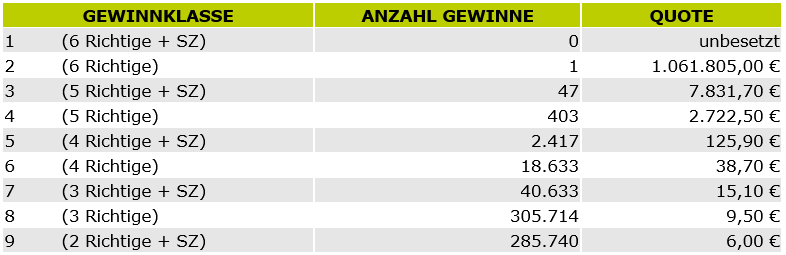 Und natürlich die Quoten inkl. JP. Danach reden wir wieder...