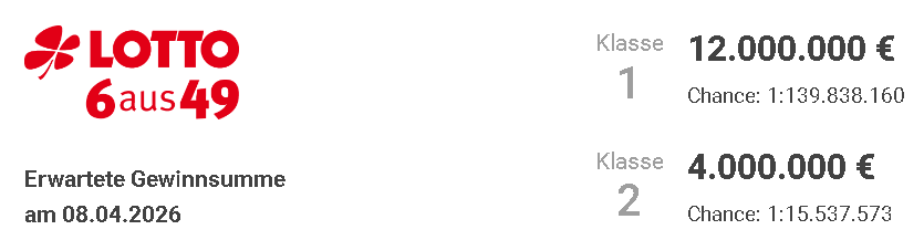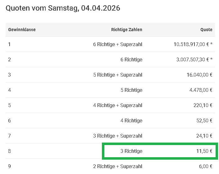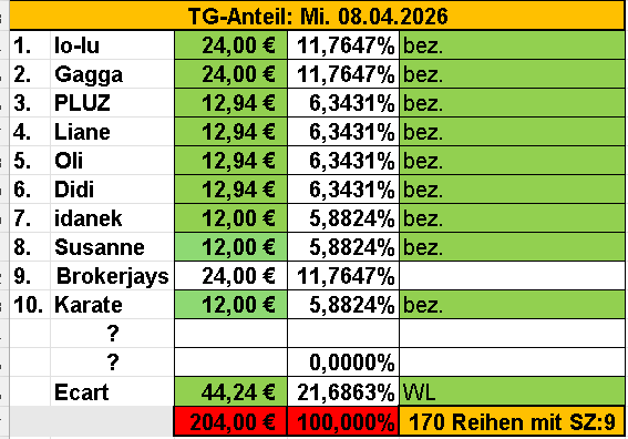 sehr wenig € | TG-Beitrag für die nächste Ziehung; Mi. 08.04.2026