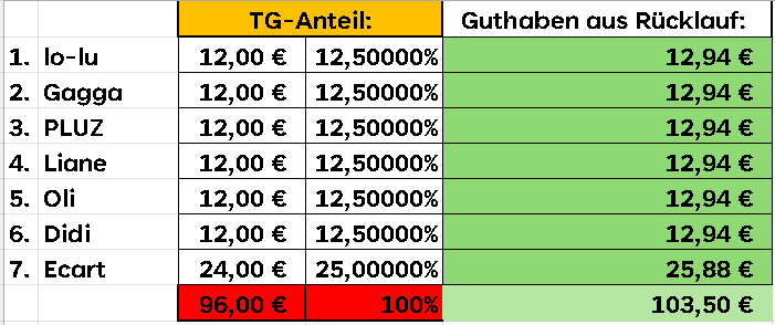 Oder mit 2 TG-Anteilen, Kosten: € 11,06 = 24 Reihen?