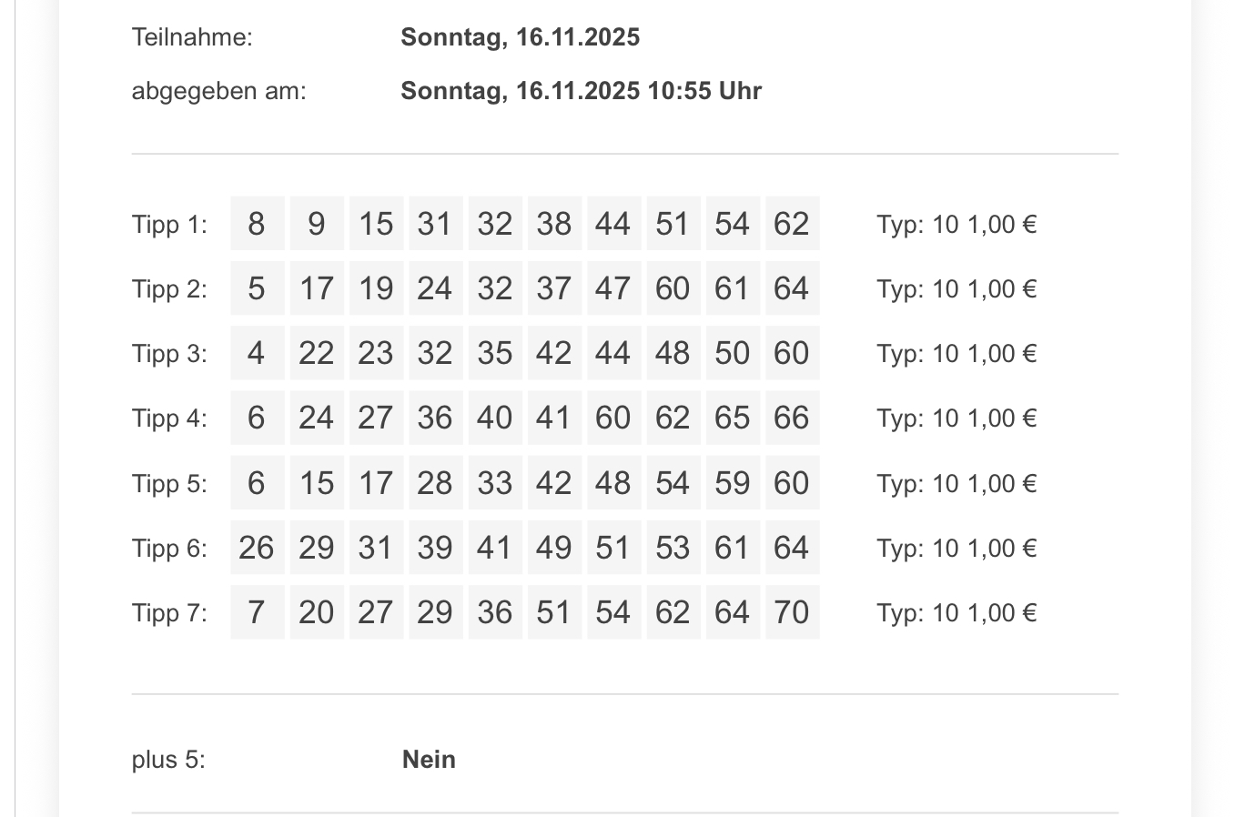 7x Keno-Typ 10