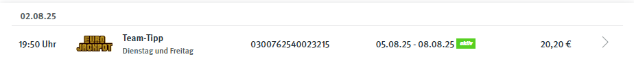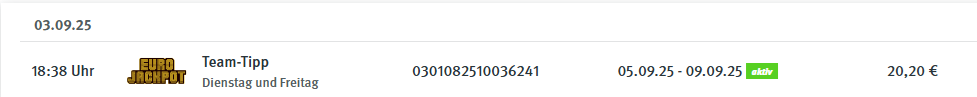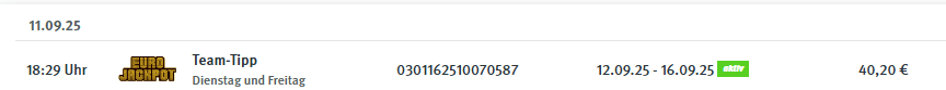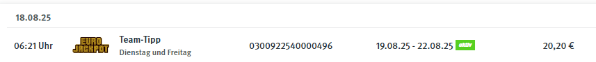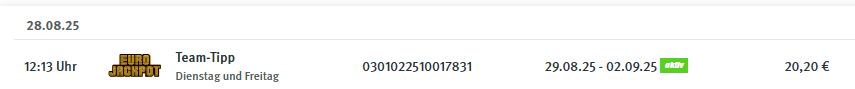 abzüglich Gewinn v. 29.07.2025 = 27,27 Euro