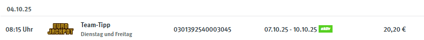 "HAPPY4EVER" TG bei cleverlotto (über die cleverlotto - APP):