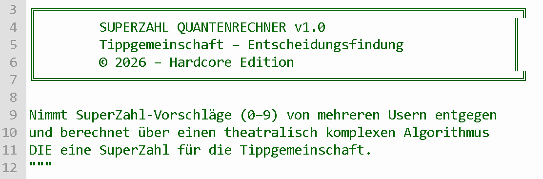 100.000 € zusätzlich für den TG-Teilnehmer, der uns die "richtige" SuperZahl geliefert hat.