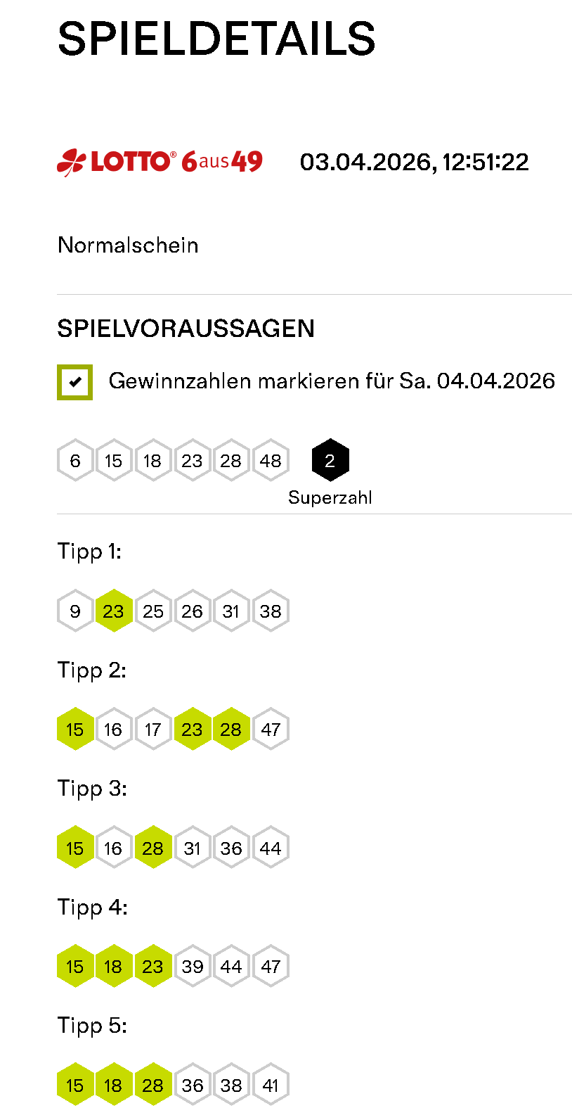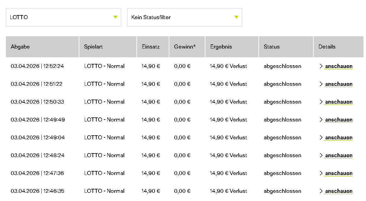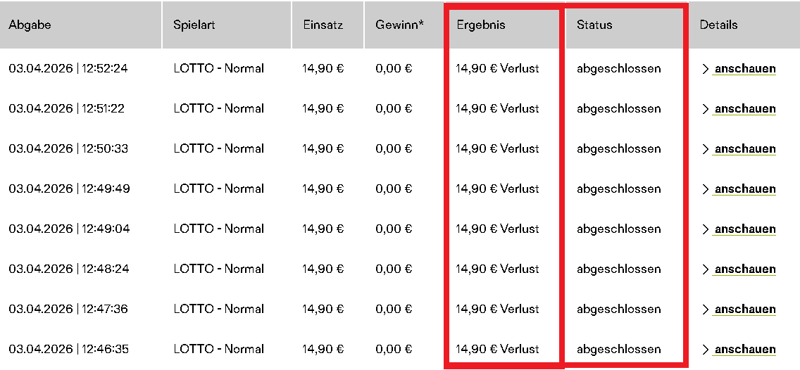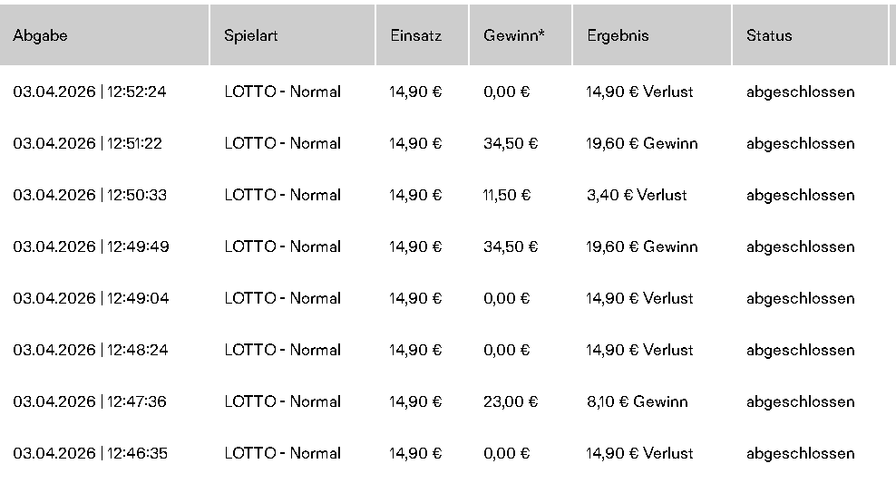 So sieht es aktuell bei meiner "Abrechnung" ( Di. 07.04.2026; 09:23 Uhr) für die TG KI Lotto aus: