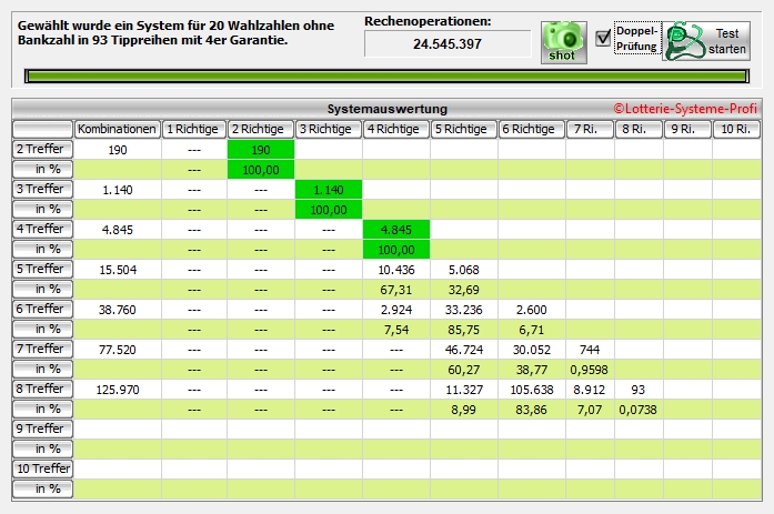 Ich habe im LSP ein System für den KENO-Typ 8, allerdings mit 93 Reihen, das eine 4er-Garantie hat. Wenn Du Interesse hast, poste ich die Reihen.