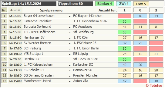 10: 1. FC Kaiserslautern - Karlsruher SC ........  ___22___22___22__ - __34%__33%__33%
