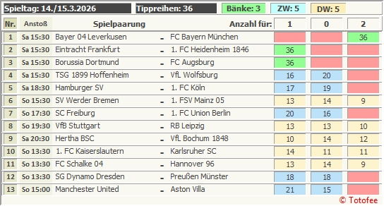 _6: SV Werder Bremen - 1. FSV Mainz 05 ..........  ___22___22___22__ - __34%__33%__33%
